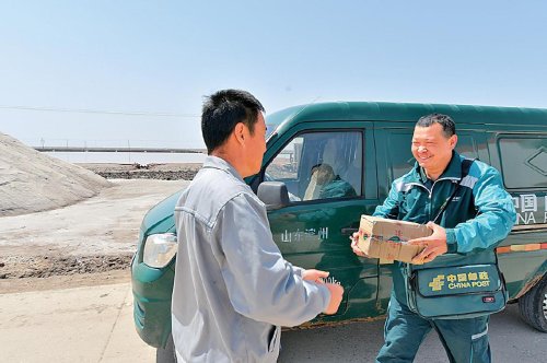 滨州位于山东北部,因濒临渤海而得名。滨州市无棣县北部沿海地区自古以盐为业,全县40多万亩盐田星罗棋布。这里的4个邮政网点、36个自提点、23个便民站,服务45个村、72家企事业单位,包括盐场工人、渔民等共计12.2万人。